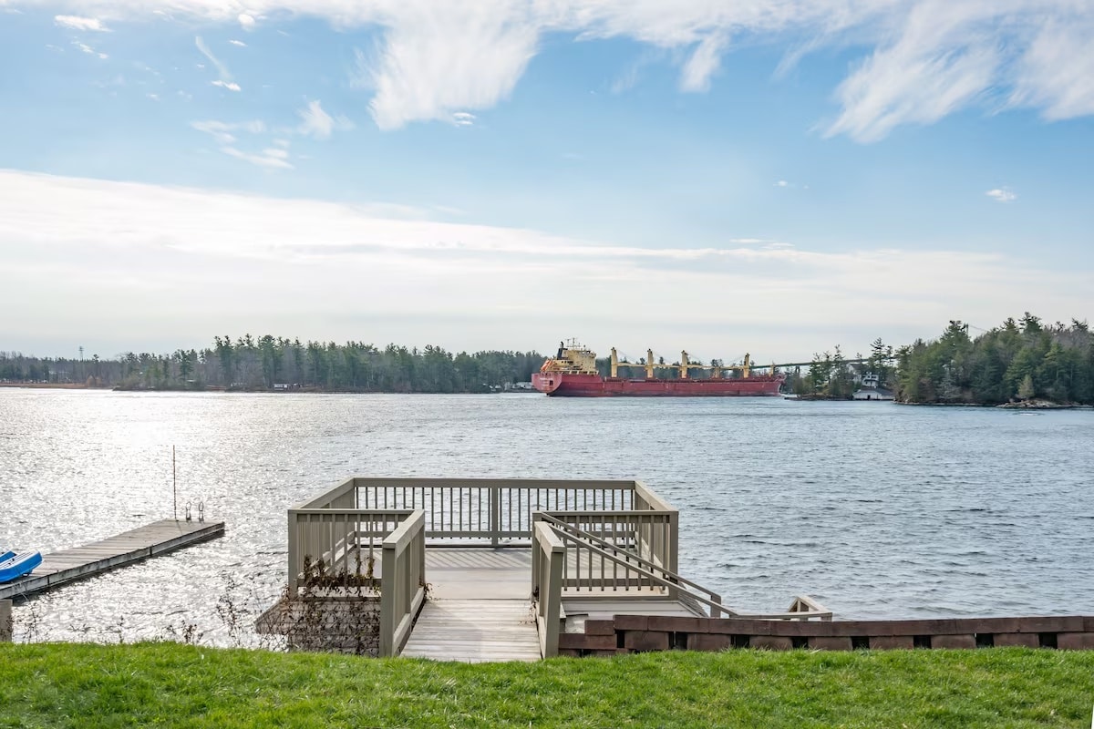 New construction home designed specifically with the thought of guests in mind overlooking the Saint Lawrence River. Enjoy a memorable fall or holiday getaway to this waterfront oasis. Highlighting this home is a large master bedroom overlooking numerous islands speckled throughout the expansive water view. Outdoor fire pit and grilling area will be set up for the fall season. Walk down our path to your own private waterfront. Great place for couples, small families or friends getting together