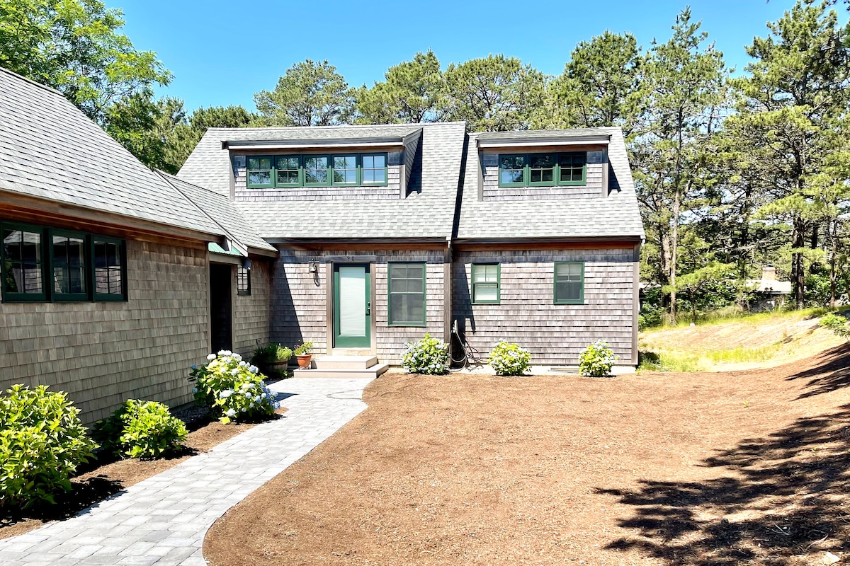 Don't miss this beautiful, pet-friendly, comfy 3 bedroom home that is totally private, filled with beautiful local artwork, and only minutes from the beach. Outdoor shower, 2 fireplaces, vaulted ceilings with skylights, wifi, cable, ping pong, air hockey, 2 full baths, hammocks, built in Bluetooth speaker system and air conditioning! A true chance to get away and live the Cape life!
