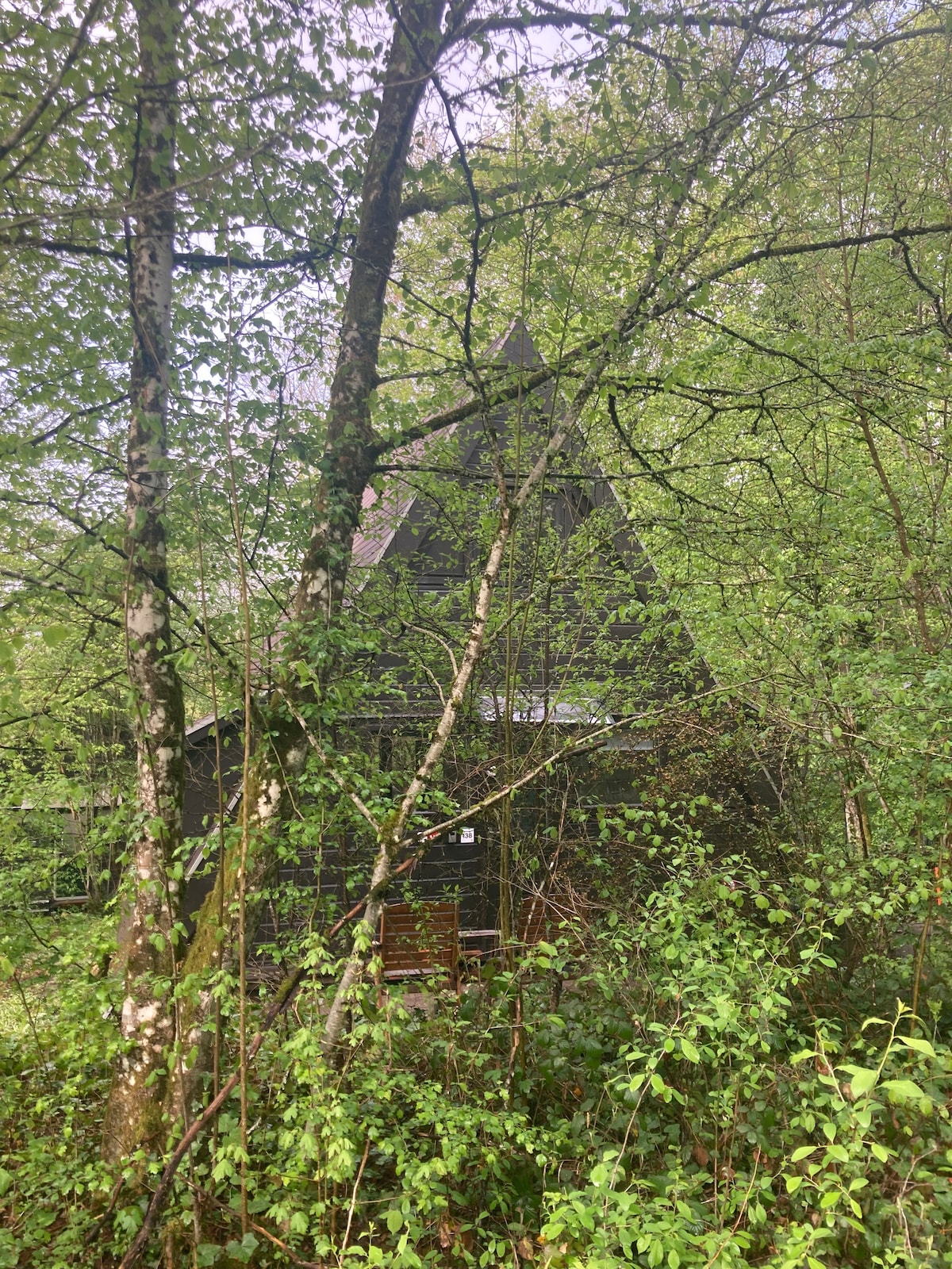 Chalet relaxant dans un paysage paisible. Pour couples, enfants et animaux. Cuisine équipée, poêle à bois, airco, 1 chambre à coucher avec lit double et vue panoramique, 1 chambre à coucher avec lits jumeaux (escalier raide, dû à la forme triangulaire du chalet) + 1 canapé-lit, salle de bain, Wifi, Netflix. BBQ. Sauna extérieur avec vue panoramique. Pret pour decouvrir la nature. Mégacentre commercial a 5 km