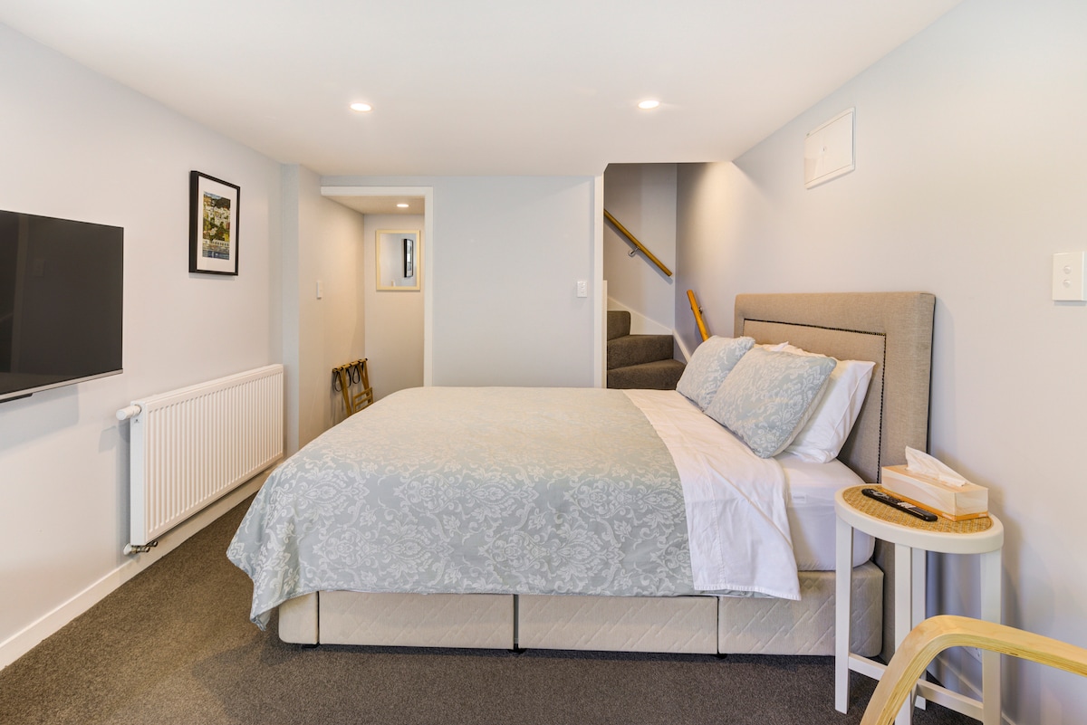 This compact studio apartment is perfect for both couples or the solo traveller. Conveniently located on The Terrace, only a 5-10 minute walk from the heart of Wellington. You will have your own private entrance so you can come and go as you like. With a comfy queen size bed, kitchen facilities, and a nice big smart tv, this studio is perfect for your stay in Wellington.