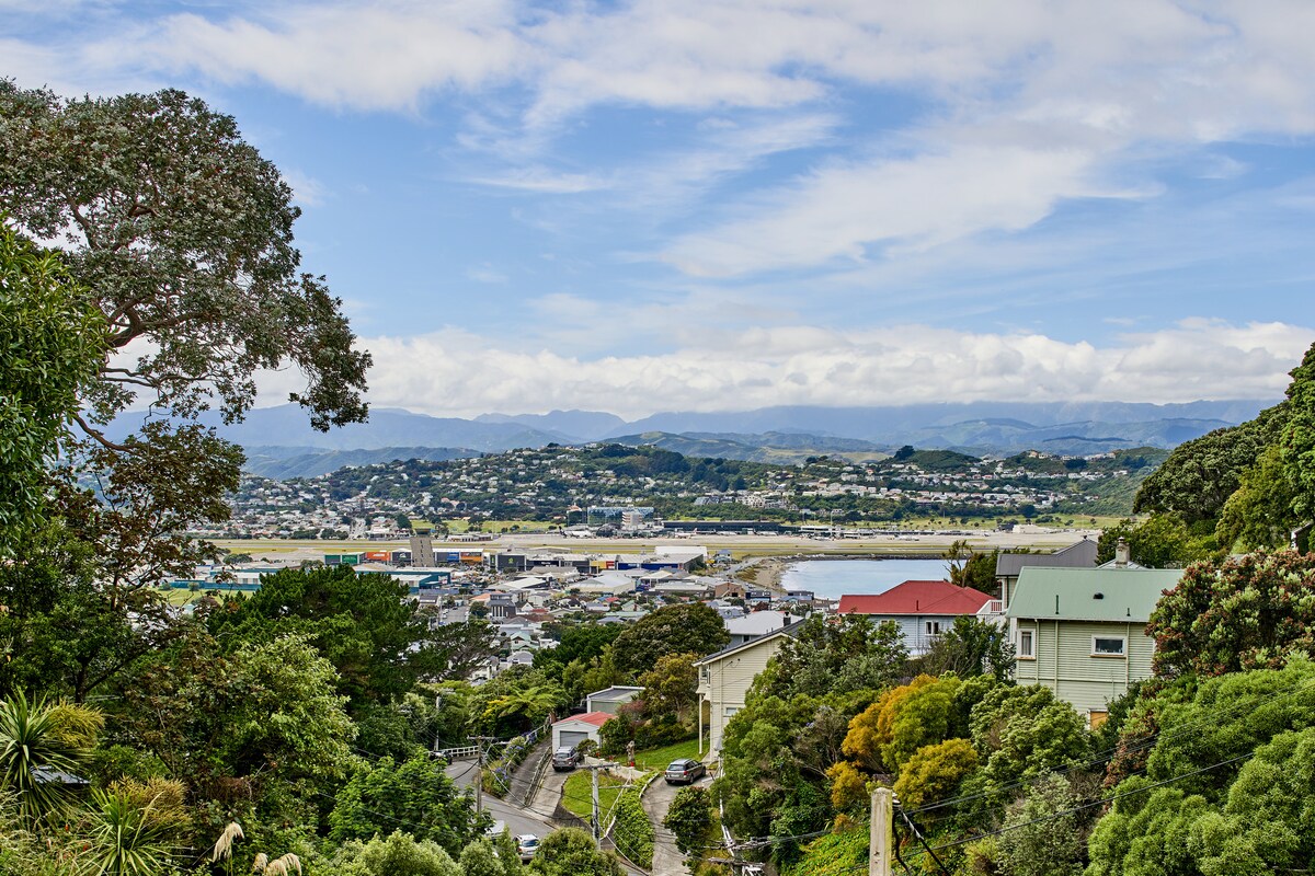 Self contained small private studio for singles or couples. Views overlooking Island Bay valley. Five minute walk downhill to the shops, cafes and a cinema nearby. A regular bus service to city and a 10 minute drive to the airport. Comfortable double bed, sink bench, microwave, bench oven, fridge, Nespresso machine, smart TV with Netflix and free WiFi. Outside areas to sit and relax. On street parking. This space is ideal for guests who prefer well-planned compact living. Hosts live upstairs.