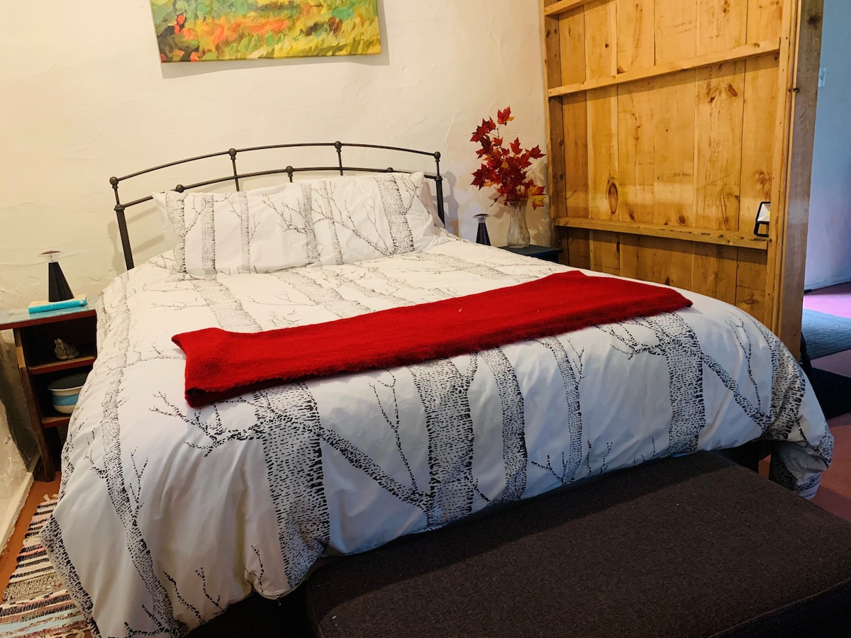 The Farm Shed is a quaint, rustic, and newly renovated guest accommodation on our working, 130-acre, family farm. Once used for machinery storage, a farm mechanics workshop, housing pigs, a farm store, and a farm office, now a retreat for guests to enjoy a quiet farm stay. Please know that we live & work on the farm. The Farm Shed has air-conditioning and a natural gas fireplace for heating, supplemented by an electric heater wall unit that makes it comfortable all year round.