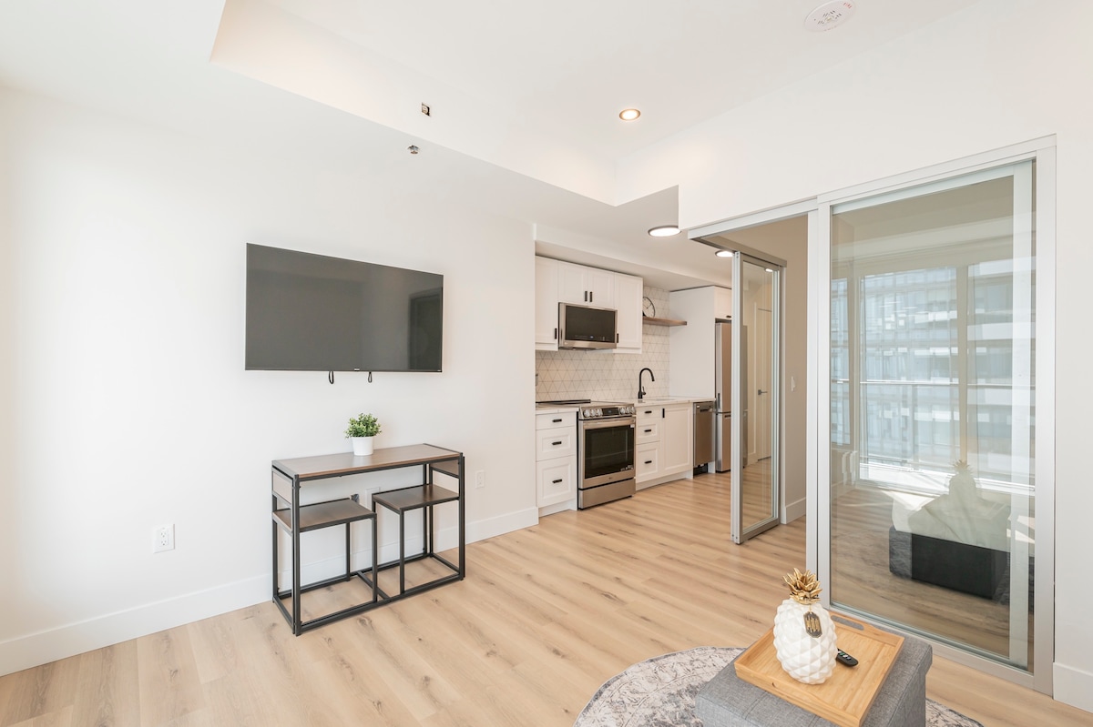 **Hydro spa hot tubs are open! **Fully licensed Airbnb - no hassle during your stay! **Stunning Interior decor, guests'' unique experience **Unmatched amenities in town! you must check out the amenities' pictures **Corner unit with stunning city views ** Location! Heart of Kitchener, centrally located to grocery stores, hip restaurants/bars, cute local shops, parks & happening city life ** 3 mins walk GO Station. 126 Weber St. W **Across Goo-gle Head office w/ LRT rail at doorsteps