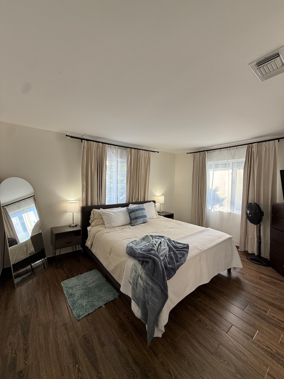 Discover the perfect blend of comfort and style. Freshly remodeled, this 1/1 retreat features a king size bed and an invigorating jet hydro shower for ultimate relaxation. Enjoy the unique flair of our hand-painted wall art. A fully equipped kitchen awaits your culinary creativity. Conveniences include recessed LED lighting dedicated work desk and onsite parking. Your stay is curated by an experienced host, dedicated to an unforgettable experience.