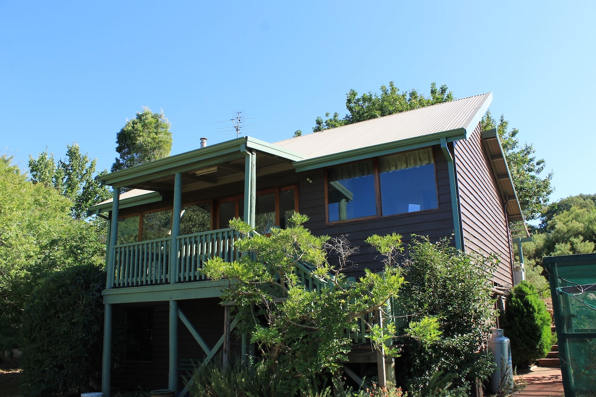 Ideal for a family holiday or romantic getaway. Fully self-contained, delightful 2-bed cottage, with magnificent views over Balingup and the surrounding hills. Secluded, tranquil hideaway on five acres, yet just a short stroll into town. Spacious living area with cathedral ceilings, cedar floors and extensive windows. Log fire, reverse cycle air-conditioning and bathroom with full-size bath for year-round comfort. Wonderful wineries, natural beauty and scenic drives are yours to enjoy.