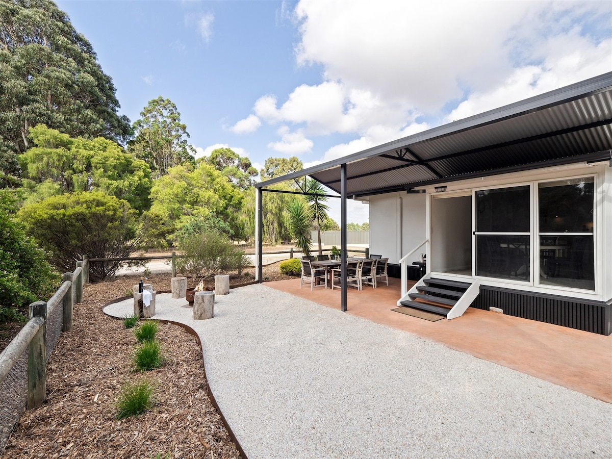 This beautiful 2 bedroom-2 bathroom cottage lies between vineyards and jarrah-marri forest. Tranquil views from every window of forest, vineyards, fields and winter creek in the valley. Designed for perfect summer and winter living, with wood fire, comfortable lounge and dining areas, well-equipped kitchen, RC-AC and WiFi. Outdoor furniture and BBQ on the covered deck. Short walks to the LS Merchants cellar door and Cowaramup brewery next door.. Approved Holiday House Reference #P219522.