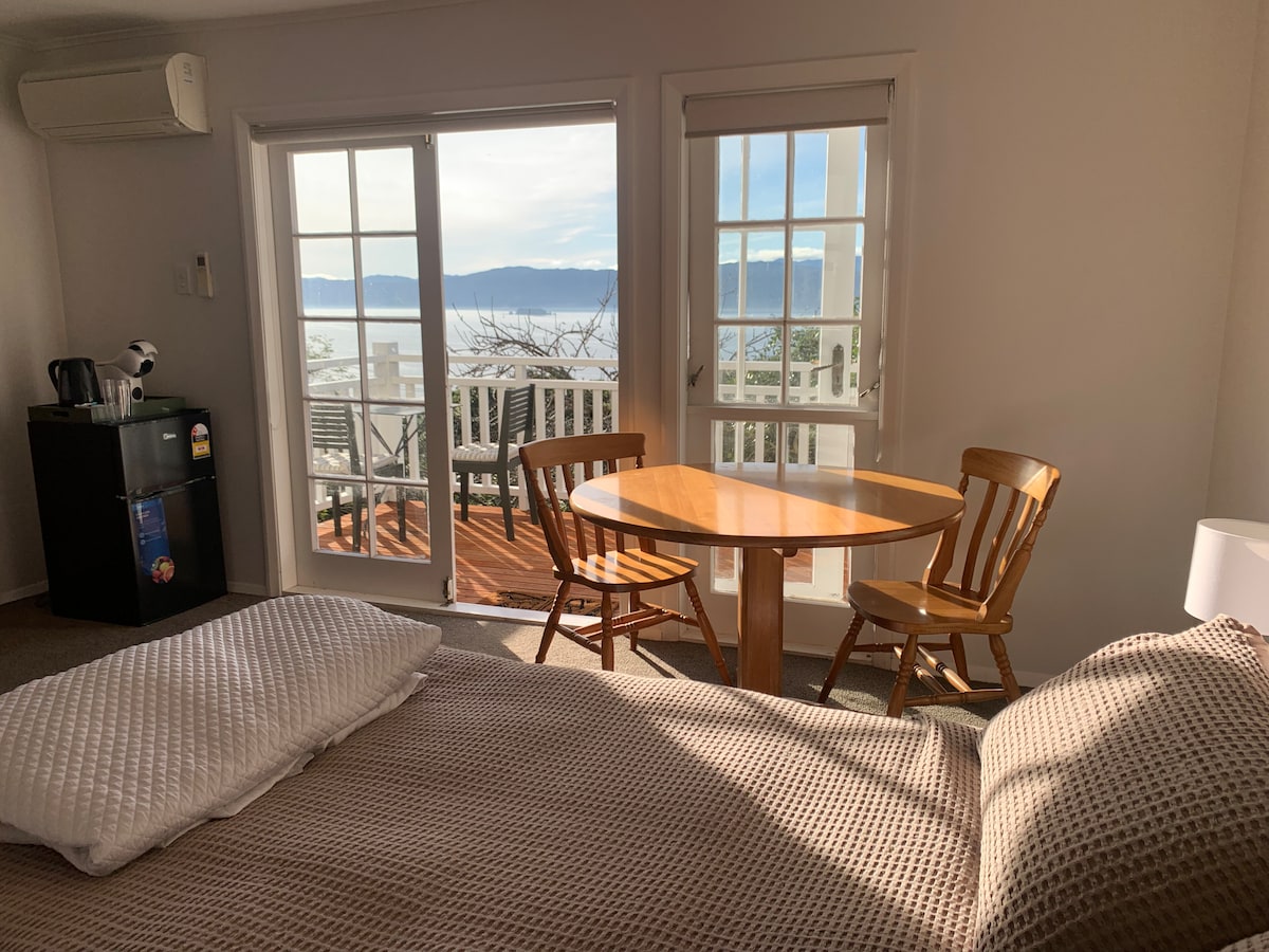 Newly built downstairs self-contained studio unit in a century old Wadestown bungalow. A complimentary continental breakfast is provided. Unit has a separate entrance, and guests are welcome to share the deck and garden areas set amongst the bushclad hills. Centrally located being a 25-minute walk or less than 10-minute bus ride to the city and Sky Stadium. Bus stop at the gate. Approximately a 10-minute car ride to the ferry terminals. Free on street parking.