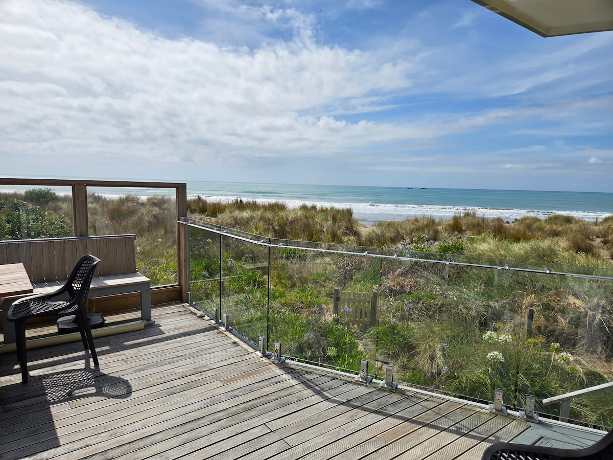 Absolute beach-front in Paekakariki, a Kapiti coast village 40km from Wellington City. Te One is a classic 1970's bach with open plan kitchen & living area, stunning deck, vintage furniture and contemporary art. Only 3 minutes walk to train station, cafe, deli, and an excellent pub/restaurant. Enjoy swimming, beach walks, hiking, mountain biking (our 2 normally available) or just relax on the deck. Unlimited high speed WiFi. Netflix, Youtube, Spotify, TVNZ on demand (no broadcast TV).