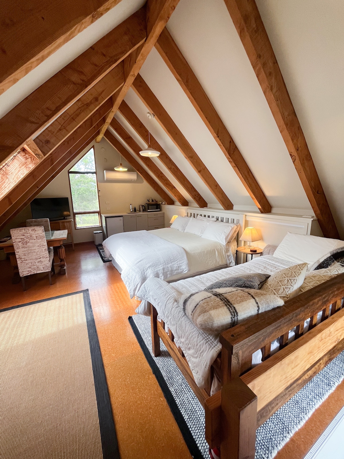 Nestled against the bush just above our home, our studio offers an amazing view of Wellington Harbour. Reaching it requires a brief uphill walk, but for those who enjoy the outdoors and don’t shy away from a little exercise, the reward is well worth it. The breathtaking views and cosy accommodation make the effort part of the experience. That said, if you prefer level access or are travelling with particularly heavy luggage, our studio may not be the best fit.
