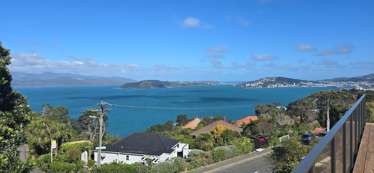 This is a very special place. A private studio with your own deck and outdoor bathtub in a stunning seaside setting. The hillside location means panoramic views from beautiful Ōwhiro Bay over Raukawa Moana (Cook Strait) to the majestic Kaikōura mountains of the South Island. You'll be in the heart of a wildlife reserve, yet only 12 mins to the city centre and airport, and 5 mins to the shops, cafes, bars & cinemas. It is nature at its wildest on the edge of the city.