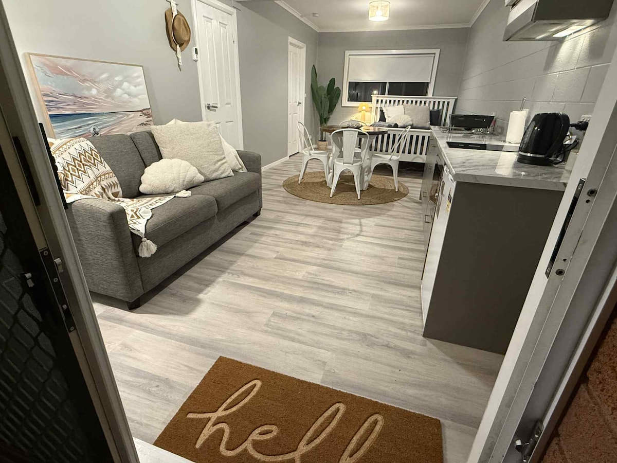 Discover our stylish one-bedroom, self-catering unit nestled in the countryside, just steps from Sale Golf Club. Relax in sleek, modern interiors with a fully equipped kitchen and cozy living space. Wake to possible kangaroo sightings and enjoy peaceful mornings. Friendly owners live opposite, ready to assist. Explore scenic walking tracks nearby, drive 15 minutes to 90-Mile Beach, or reach vibrant Sale in 8 minutes. Ideal for all seeking a chic retreat.
