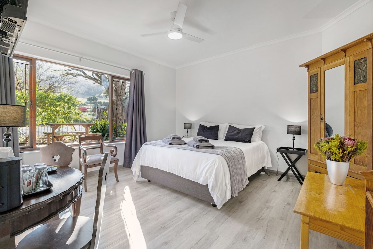 Feast your eyes on the stunning mountain scenery and fill your senses with nature's beauty, smells and sounds in a home away from home. The self-catering unit is conveniently located for outdoor enthusiasts as it's surrounded by both mountain biking/hiking routes, wine farms and great local restaurants. An absolute paradise for birdwatchers. Also, an ideal breakaway far enough from city noises yet close enough to popular amenities. The unit also has its own lush green lawn to enjoy a picnic.