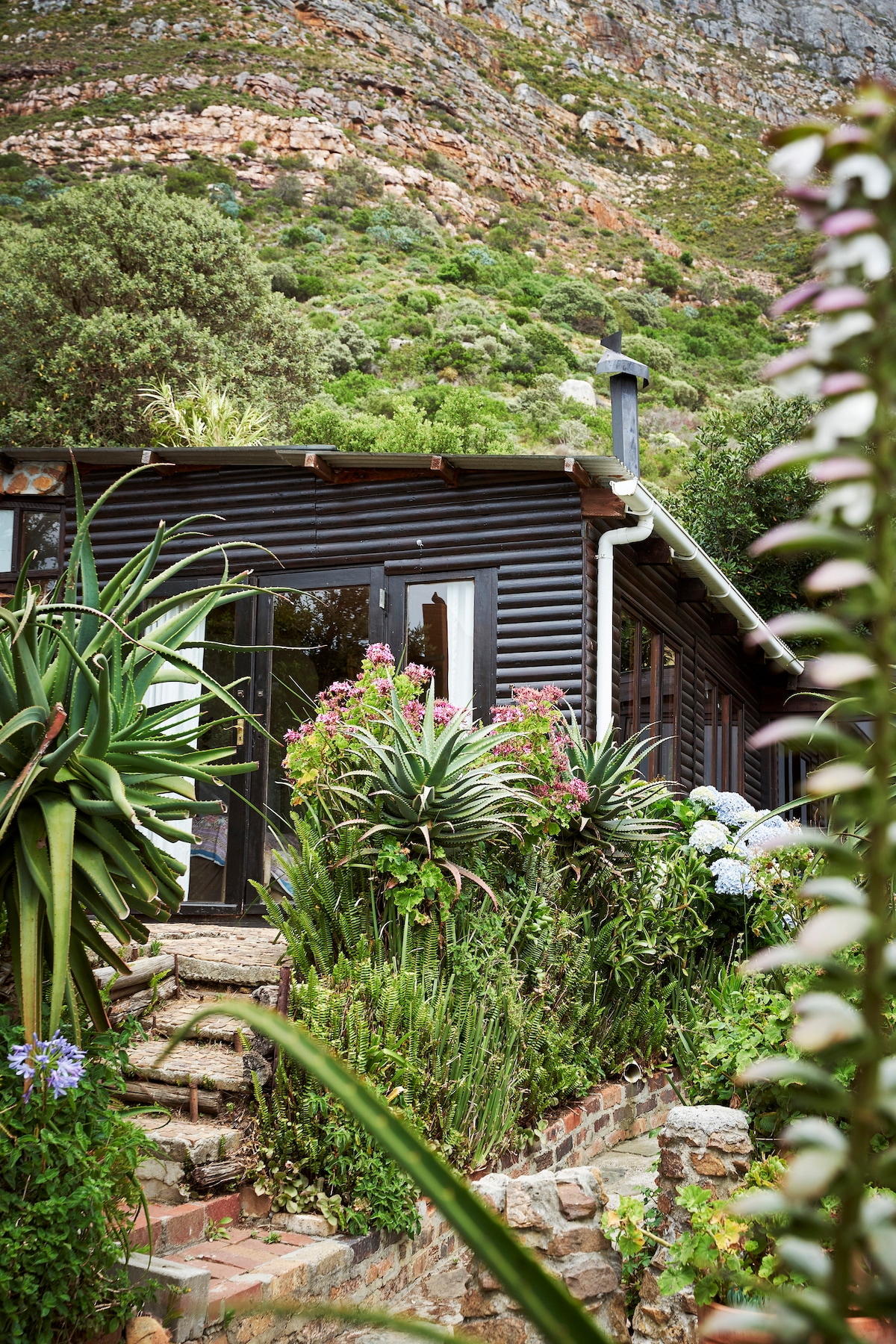 This is one of Cape Town's environmental and historic treasures. It is a candle-lit hideaway with stunning views of mountain and sea. The Cottage is completely off grid, with fresh water coming off the mountain and energy from the sun. The cottage is built from local materials - stone walls, reed ceilings, blue gum supports. There are glass doors and windows throughout the cottage. The cottage has a beautiful open-plan bedroom and bathroom. The bathroom includes a tub, a toilet and a basin.