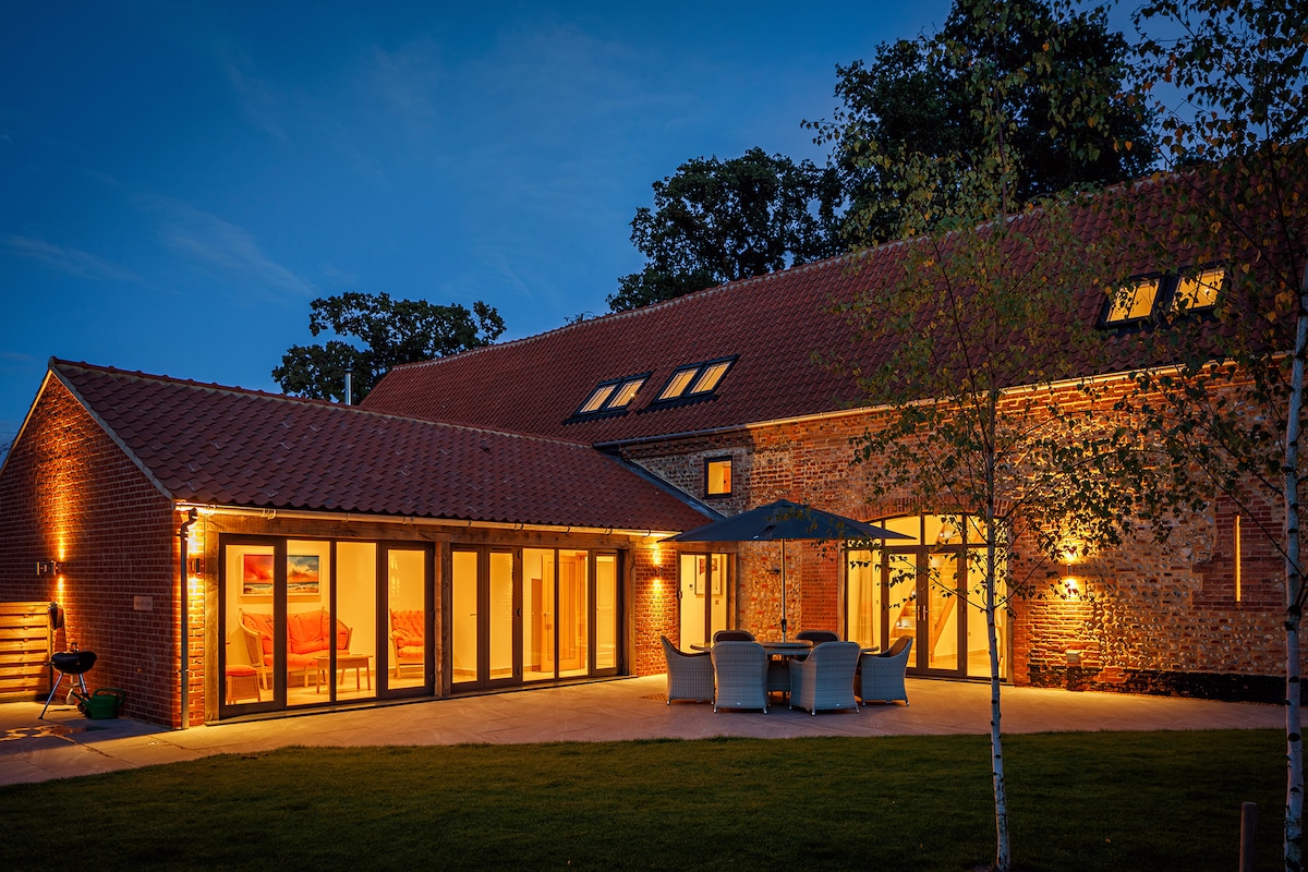 A spacious barn conversion in the heart of the Norfolk Broads. Oak Barn Norfolk is a sympathetically, newly converted, barn in the village of Tunstead. It offers 4 large bedrooms, a beautiful double vaulted kitchen/dining room, a spacious living room with a cosy wood burner, a snug, 3 bathrooms and a W/C. The floors are natural limestone with underfloor heating throughout. Oak Barn has two outdoor seating areas, a sunny court yard and a fully enclosed lawned garden.