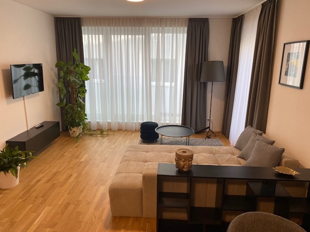Welcome to this stylish flat in the centre of Wels! Our flat has everything you need for a great stay: → Smart TV with NETFLIX access → NESPRESSO coffee → Kitchenette with microwave and oven → Comfortable double bed and sofa bed for 4 guests → Washing machine & tumble dryer → Super central location → Own parking space (garage) "Everything very new, modern and tastefully furnished. Perfect and super central."