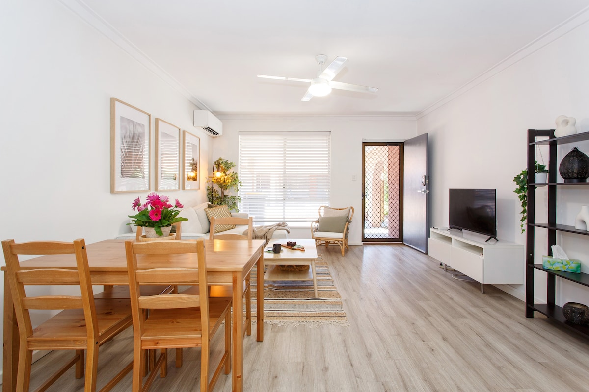 2 minutes walk to Scarborough Beach and restaurants. You’ll love it, a large spacious house with an amazing outdoor living space with the ease of the hop, skip and jump (literally only 300 meters) to the beach and 900m to the Scarborough pool! Free Netflix in the lounge room, with both bedrooms (one king bed & one queen bed) having ceiling fans and the air conditioner in the open planned lounge room cools the air on those warmer days. It's a great place for all travellers.