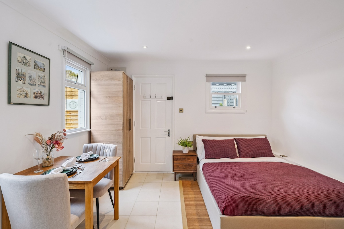 Perfect if you'd like a spacious Studio experience with your own private garden. Just a seven-minute walk to Harrow on the Hill train station, delivering you to some great spots in Central London in 25 minutes. There's a fast train to Marylebone in 15 minutes! Crucial points: 26 m2 of living space. Great sofa bed that comfortably sleeps two in addition to the main bed. Fridge. Ensuite Bathroom. Television. Cooking in a large kitchen shared with other studios but cleaned on a daily basis.