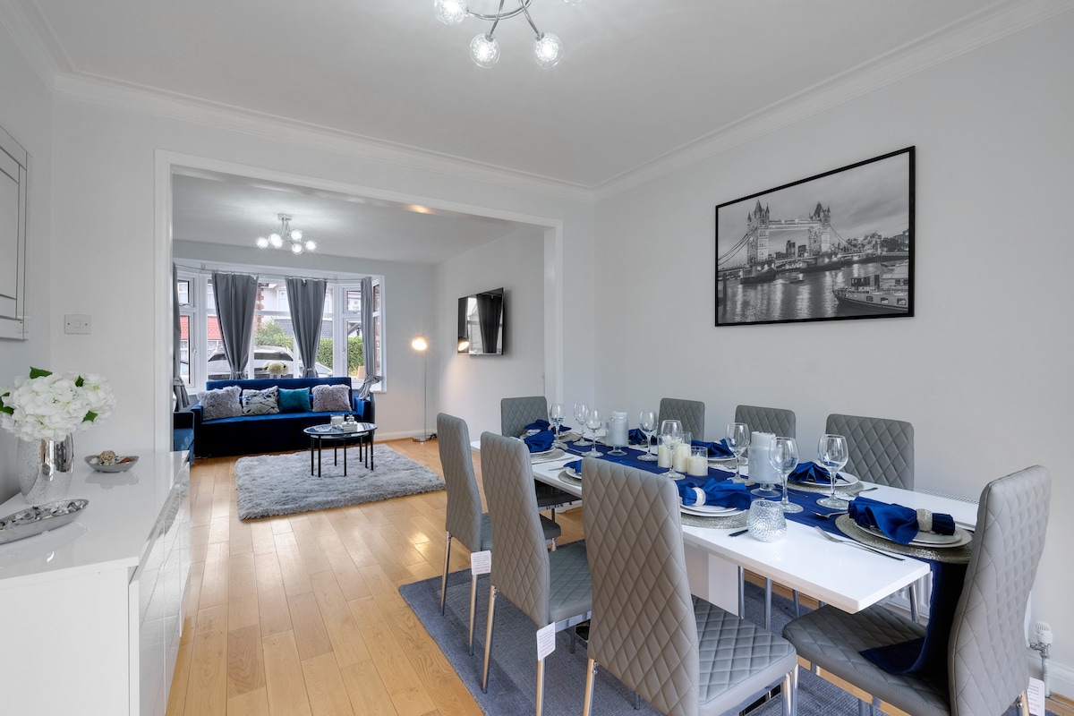 Relax in this modern 3-bedroom home featuring memory foam mattresses, smart TVs in each room, and a dedicated workspace. The fully equipped kitchen comes with a complimentary coffee bar, and the private garden offers a peaceful retreat. Enjoy off-street parking, high-speed Wi-Fi, and essential toiletries. Perfect for families, groups, or business travelers. Just minutes from Wembley Stadium, London Designer Outlet, and Wembley Park—ideal for your next getaway.