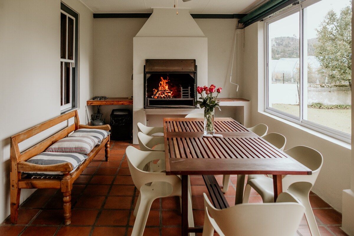 Situated on a small holding 5km outside Franschhoek, opposite the exquisite La Motte Wine Estate, Heidi’s Barn offers the perfect self-catering base from which to explore the Winelands. A fire pit, outdoor dining area and a large swimming pool (shared with one other cottage) are perfect for summertime relaxation while an indoor wood-burning fireplace and wooden floors throughout make for a cosy winter escape. The barn runs on mains power with solar back up for load shedding.