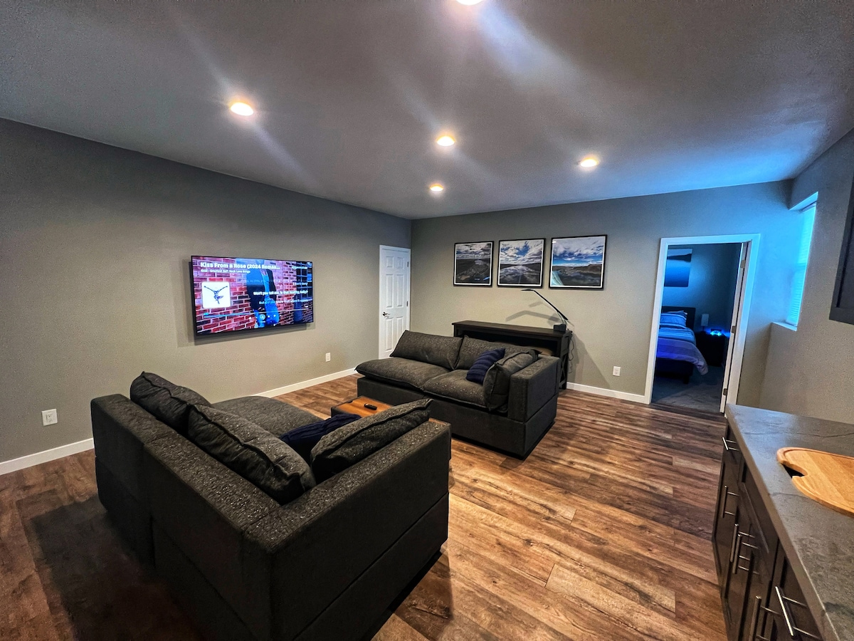 A lovingly designed space with attention to detail, enjoy heated floors in the bathroom. A easy walk to the heart of downtown Leavenworth. Clean simple decor with ample lighting, a full kitchen and a smart TV. You’re sure to fully relax in this quiet neighborhood and enjoy the convenience of your personal parking space. We will provide you a forest service permit to compliment your basecamp for all the recreation adventures awaiting you!