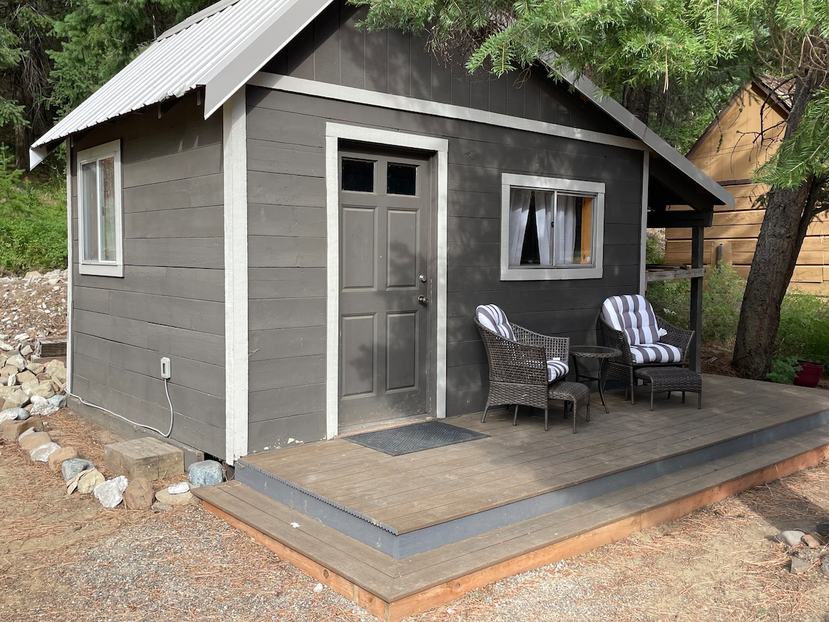 A comfy and modern cabin space with a full kitchen, well water from the sink(delicious). Wood burning stove ( we supply the wood)and a king size bed. A 70 yard walk down a hill to your own private space makes you feel at home. During winter you may want winter boots. Only a 5 mile drive to Leavenworth. Twenty minute drive to Wenatchee. Our home is on the property.