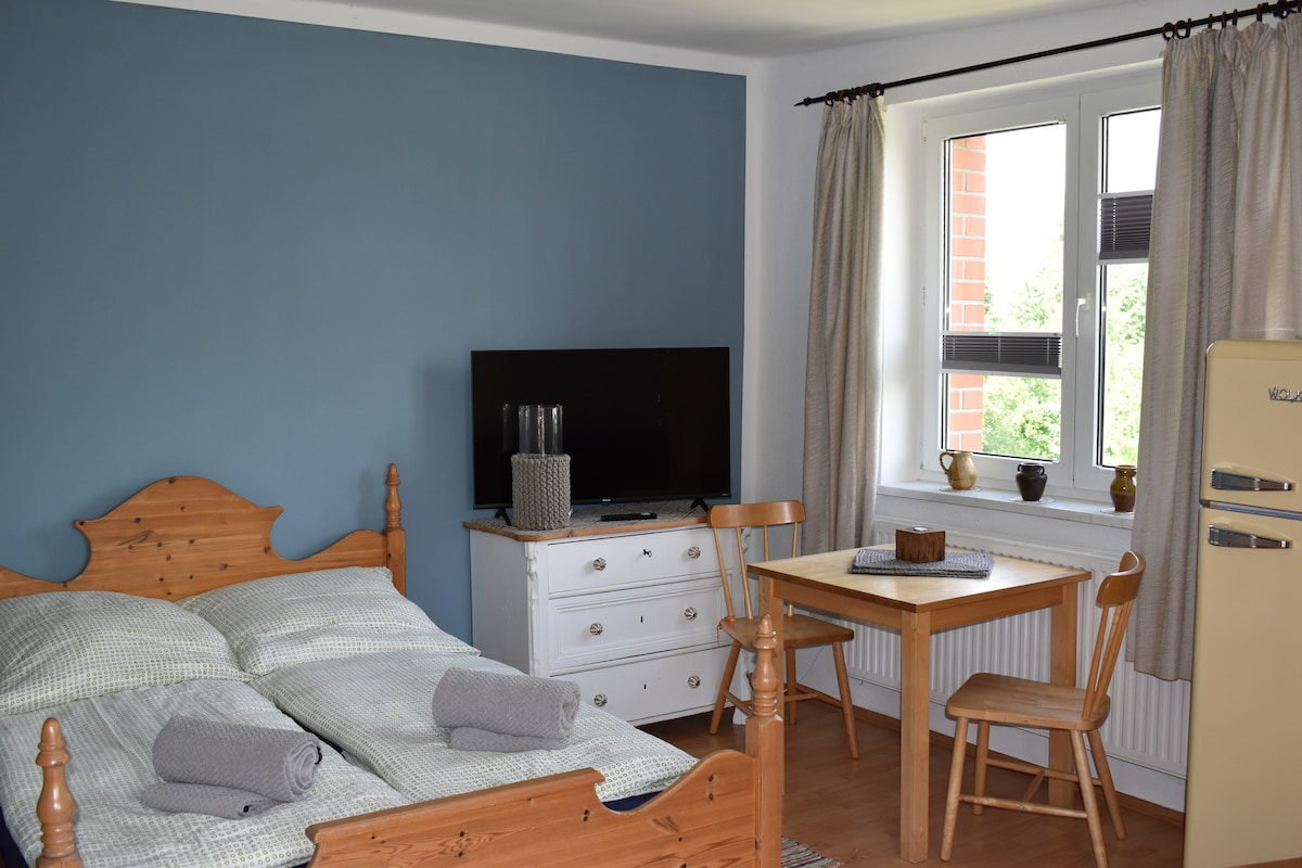 Mitten in der Natur, direkt an eine Streuobstwiese angrenzend, liegt die ruhige Ferienwohnung. Auf gut 30 m² erwartet Sie ein neu eingerichtetes Zimmer zum Erholen und Genießen. Die Abgeschiedenheit des Ortes ist ideal dazu geeignet, sich zu entspannen und um sich vom Alltagsstress zu erholen. Der direkt an das Grundstück angrenzende Elberadweg lädt zu Wanderungen oder Radtouren ein. Außergewöhnliche Ausflugsziele, wie die Stixer Wanderdüne oder Solarbootsfahrten runden den Aufenthalt ab.