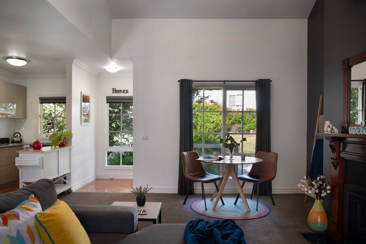 Maggie May is the cutest little 1850's miners cottage located in a quiet Street and is close to Ballarat CBD, Sovereign hill and the Ballarat Wildlife Park. She is newly renovated, whilst retaining her traditional and charming authentic self she has been thoughtfully and beautifully decorated. By day enjoy in friends, couples or family fun time in a game of backyard finska, by night chats and giggles by the fire pit or watch your favourite Netflix series and then cozy up in a comfortable bed.