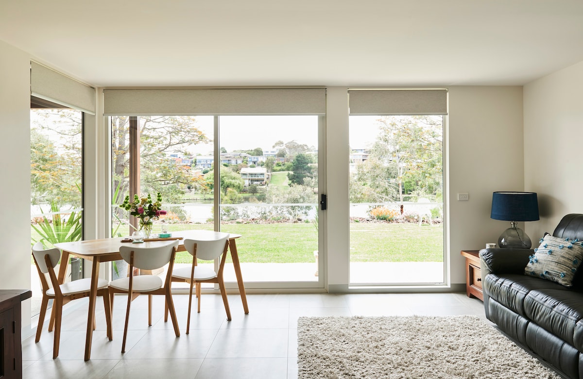 The Lake House" is on Blue Waters Lake. The unit is on the bottom level of the house with fabulous views and direct access to the lake and walking track. Infants and children are not offered accommodation due to the proximity to the lake. It consists of a modern, spacious living room with kitchenette, bedroom and ensuite. There is a beautiful garden with an outlook over the lake and an alfresco with a BBQ for guests to use. Kerrie lives upstairs. Sorry, no early check ins.☺️