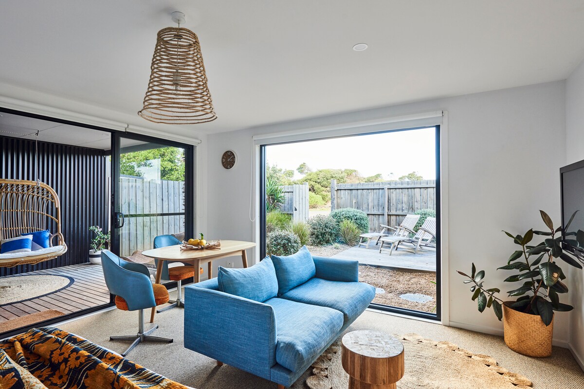 Drift off to sleep to the soothing sounds of the ocean in this tranquil property, purpose-built for couples. The colourful interior includes many coastal touches, while the native garden comes with an undercover lounge area with hanging chair. Unlike many other listings we offer overnight stays during the week. As seen in The Design Files & Qantas Traveller Magazine - December 2021.