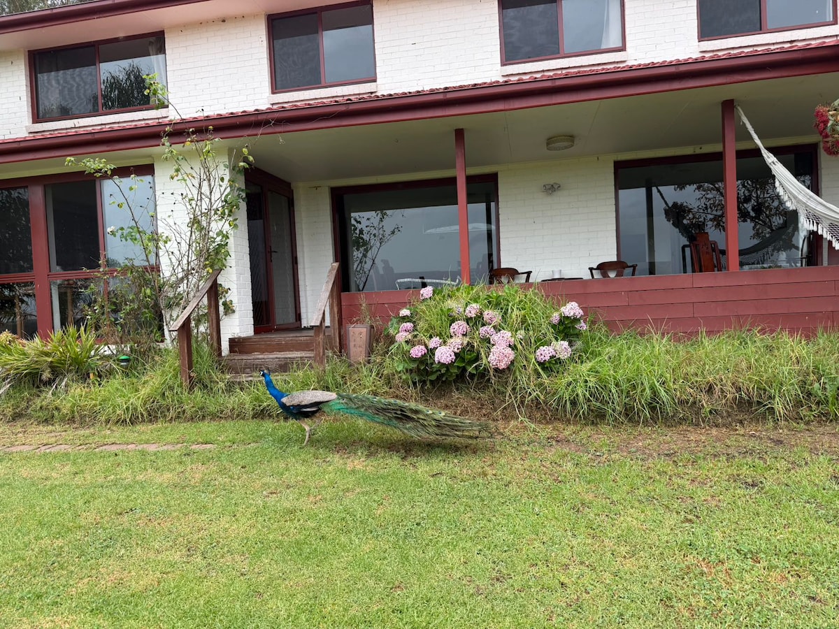 Our home on a tree filled property is situated directly opposite the beautiful Glenbrook Lagoon, a 20 minute walk to Glenbrook village and train station .The pool, pub, bowlo and restaurants are just a few blocks away . With half acre of lush vegetation and a winding creek running through the property spanned by numerous charming bridges, we are home to a huge variety of wildlife and birds including King Parrots, Rosellas, Lorikeets and bower birds. A truly unique slice of paradise in Glenbrook.