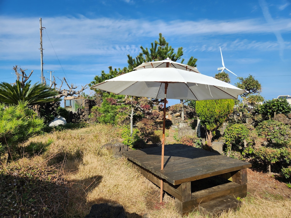 제주도 동쪽, 한적하고 조용한 행원마을에 위치하고 있습니다. 창 밖으로 보이는 탁 트인 바다와 풍차와 함께, 돌담길 가득한 감성어린 동네 풍경을 창문과 마당에서 감상하실 수 있으십니다. 또한 도보 5분거리에 해안도로를 따라 아름답게 펼쳐진 바다도 만나실 수 있습니다. 마당의 대문 안으로는 총 두 채의 집이 있습니다. 바깥에 바로 보이시는 집이 게스트용 별채 입니다. 게스트용 별채를 지나 안쪽 집에는 저희 부부가 거주하고 있으며 작게나마 이렇게 민박을 운영중에 있습니다. 숙소 안의 창문을 통해 저희 부부가 가꾸는 마당의 정원과 한적하고 정겨운 마을, 제주 바다가 조화롭게 이루어진 풍경을 만끽하시며 묵으시는 동안 여유 한아름 가득한 힐링의 시간을 보내실 수 있도록 최선을 다하고 있습니다.