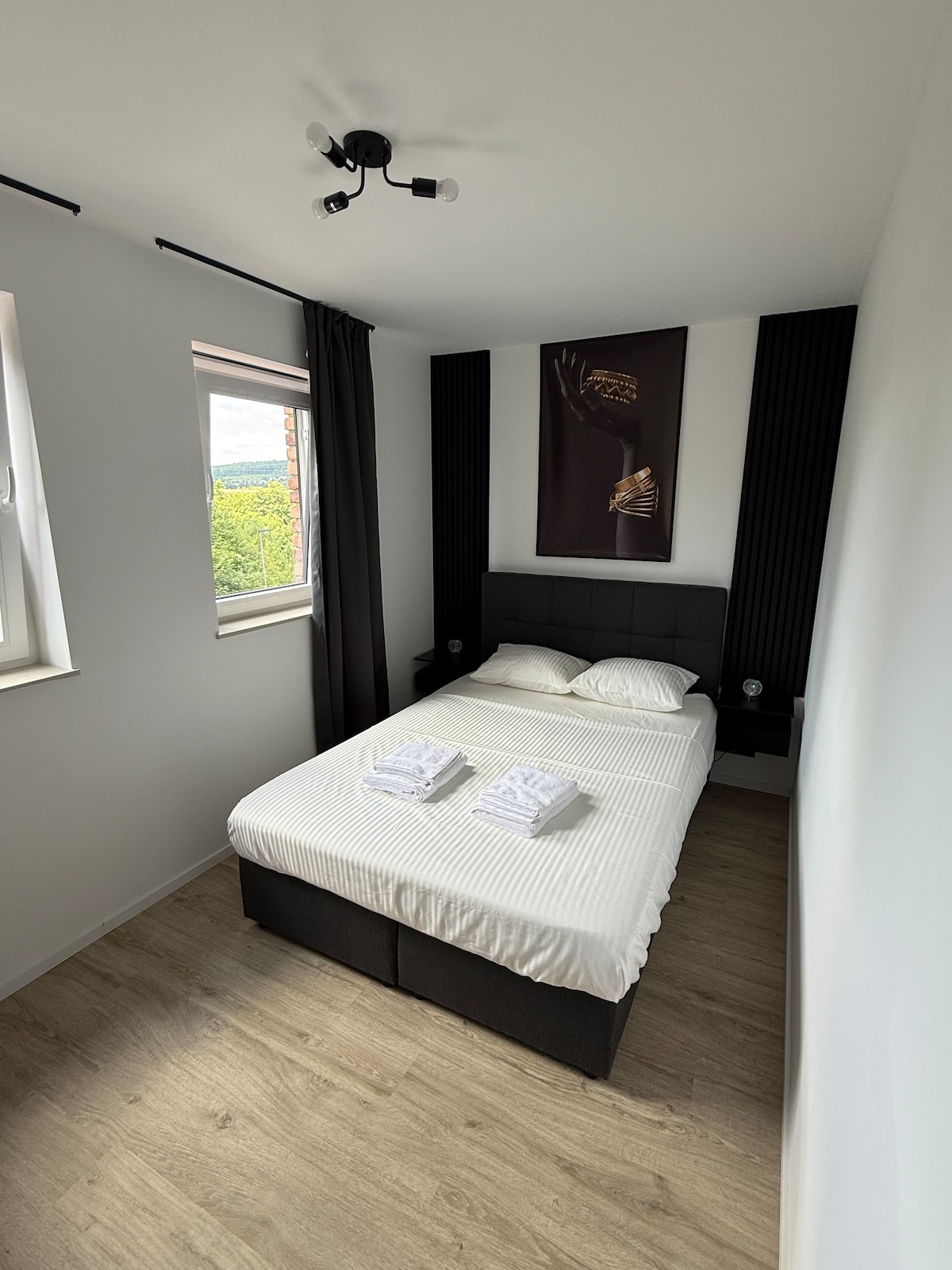 A seulement 1.3 km du centre de la plus petite ville du monde. Profitez du calme de la campagne tout en étant à 2 minutes de l'effervescence des bars et restaurants. L'Orée de Durbuy, vous offre une vue exceptionnelle grâce à sa grande baie vitrée de 5 mètres. Vous profiterez d'une salle de bain privative dans chacune des chambres, d'un bain à bulles, d'une cuisine avec électroménagers haut de gamme, d'une borne de recharge pour votre voiture. Soyez les bienvenus chez nous.
