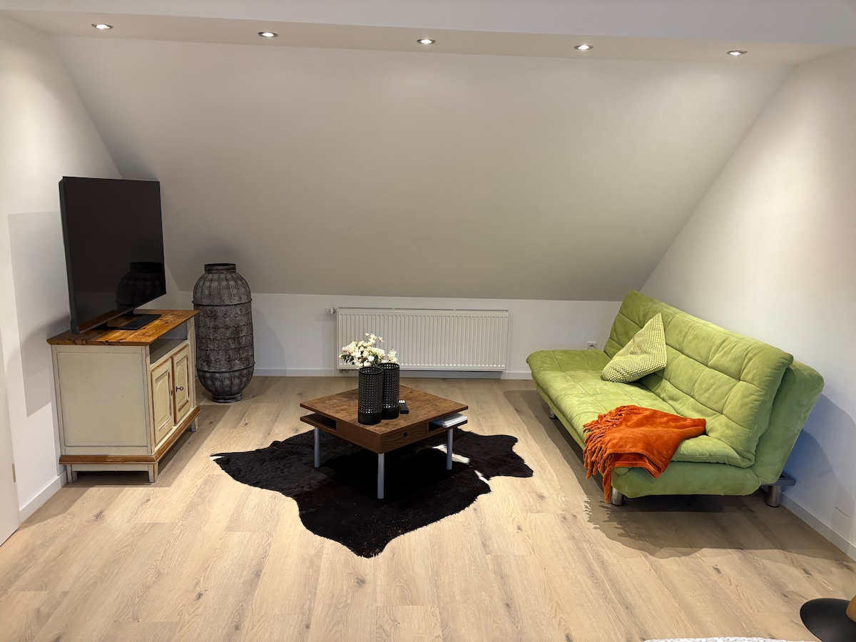 Spacious, bright and lovingly furnished apartment on the first floor with 2x bedrooms (king size box spring bed 1.80x2.0 and double bed 1.40x2.0), dressing table, kitchen with dining table, modern bathroom with shower and window, desk with a view of the... Green area, cloakroom, own entrance and parking space. WiFi/Smart TV. Perfect starting point for trips to Münsterland, Münster, Dortmund etc. The historic old town is 2 km away and offers shops, bars, cafes and the famous brine pool.