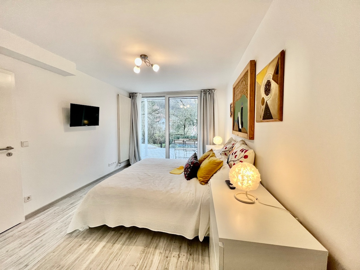 宽敞、明亮、家具齐全的ETW + 停车场、露台和花园