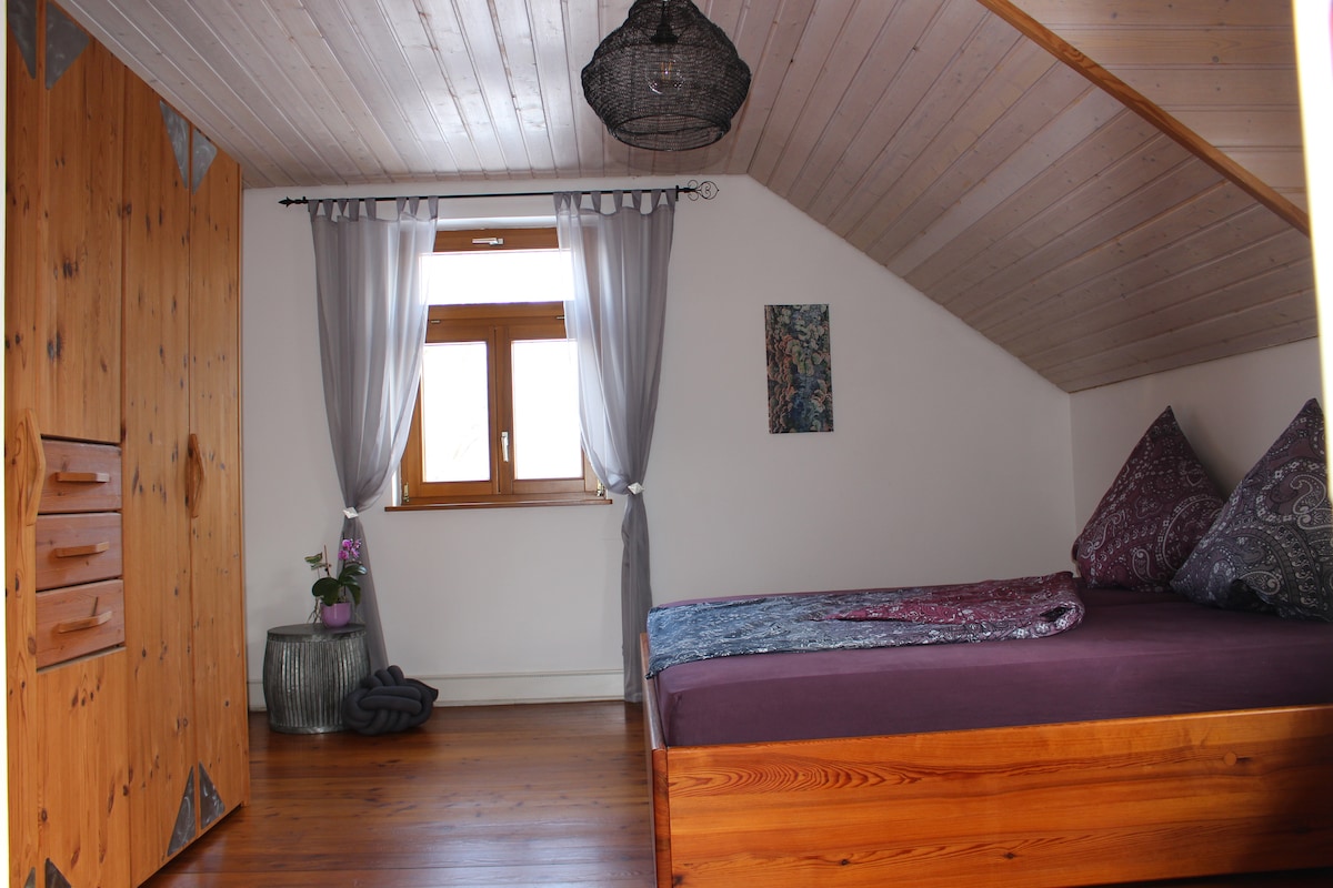 Ferienwohnung in nähe des Maintalradweg mit Stellplatz und Wallbox. Unsere renovierte Ferienwohnung liegt in Nähe des Mainradwegs und verfügt über eine große, gut ausgestattete Wohnküche mit Herd, Backofen, Spülmaschine. Badezimmer mit Dusche und WC. Handtücher und Föhn. Ein Schlafzimmer mit einem 1,80m Bett für 2 Personen sowie ein Schlafzimmer mit einem 1,40m breiten Bett, Bettwäsche inklusive. PKW-Stellplatz vorm Haus mit der Möglichkeit gegen Bezahlung ein E-Auto zu laden.