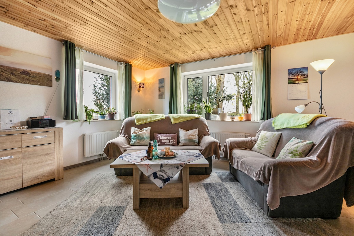 Modernes Apartment am Deich 🐾 Hunde willkommen 🐾 • Näpfe und Körbchen vorhanden • 600m zum Meer - ideal für Spaziergänge • Restaurants in unmittelbarer Nähe • offenes Wohn- und Schlafzimmer • Komfort: Wlan, Spiele, Bücher, TV Euer Rückzugsort für Ruhe, Natur und Entspannung! 🌊