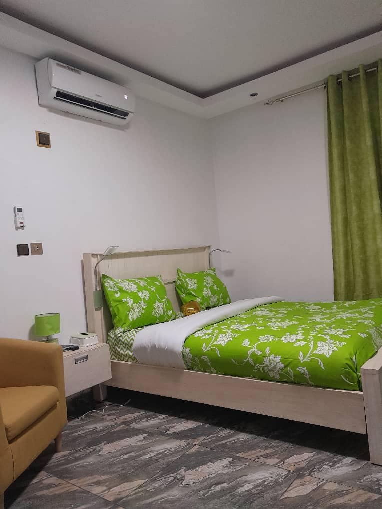 We offer you a fully furnished and serviced suite. Located off Ring Road Central, only 15 minutes from the airport, 10 minutes drive to Osu and the city centre of Accra. You’ll love our place because is comfortably furnished in a contemporary style, and is fully equipped with everything you need to make your stay a memorable and relaxing one. Our place is good for couples, solo adventurers, business travelers, and big groups.