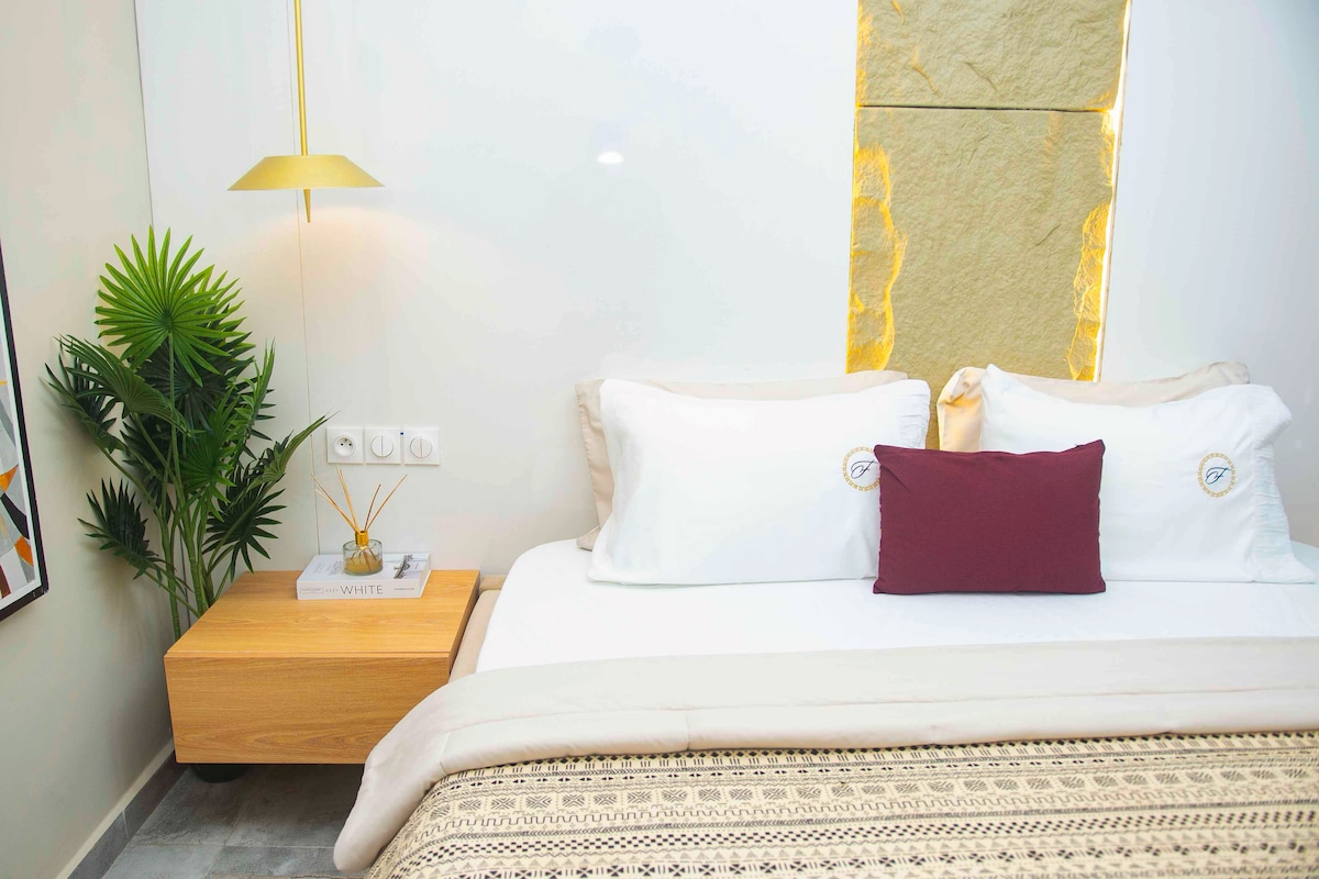 Take it easy at this unique and tranquil getaway studio apartment located within the prime and secured Cantonments area near the US embassy. Excellent location; 7 mins from Kotoka International Airport and within 10min radius from the city's major shopping centers and restaurants. It offers guests a cozy feel from the inside and breathtaking serene view of the pool and beautiful garden. This newly furnished 2nd floor studio is designed to cater for business, leisure & long stays.