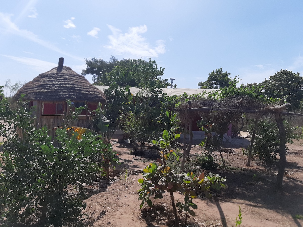漂亮的非洲小屋,房间和私人浴室坐落在一个真实的环境中,面向稻田,露台!!! 享受您在卡萨曼斯住宿的最佳时刻,热情的工作人员,无线网络远程办公空间