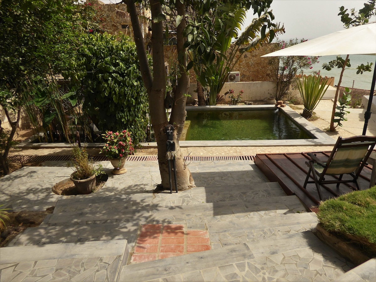 Nichée dans le jardin tropical, la villa est parfaite pour un séjour détente, en famille ou entre amis. Verger & terrasses fleuries valorisent la piscine (11m/5). Idéalement situé entre Saly et La Somone, Ngaparou, village de pêcheurs authentique, offre un cadre de vie serein. Notre équipe sera à vos petits soins (gardien et maîtresse de maison). Commerces et services proches + nbx loisirs et activités: balades (terre/mer), plages, sports nautiques, golf, parcs animaliers, super restaurants...