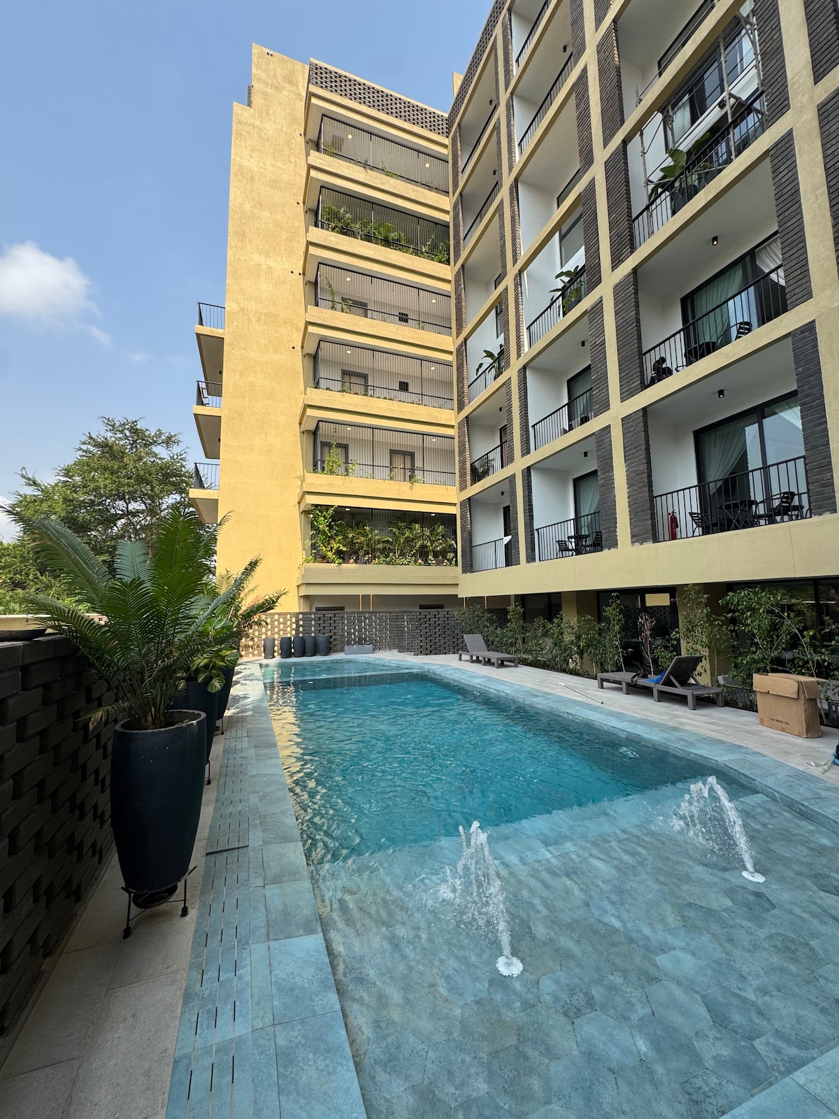 Make yourself at home in this modern 2-bedroom apartment, perfectly located in the heart of Accra—just moments from the city’s best cafés, restaurants, and culture. The apartment offers all the essentials, including a fully equipped kitchen, Wi-Fi, and a smart TV. Take advantage of the resort-style amenities: a stunning pool with a swim-up bar, a well-equipped gym, and a library/ pool table room. Whether you’re traveling with family or friends, it’s an ideal spot to enjoy Accra in comfort!