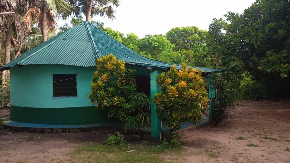 ABOUT TIME LODGE is a natural tranquil paradise right on the beach & only 40 mins from the airport. 'Folonko' is a double room - half of a traditional African roundhouse, with an ensuite bathroom and solar generated electricity. The sea view restaurant includes vegan options. See turtles, ospreys, flamingos, monkeys, bush babies & mongoose. About Time is a quiet off-grid affair allowing you to feel the jungle and ocean around you. Simple but comfortable - African style.