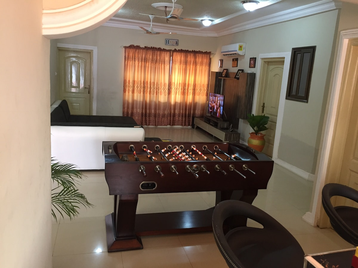Welcome to E&T Villa. Visit this great place with lots of room for fun.Escape to our cozy retreat, perfectly situated in Gbawe, Accra only about 20min drive from West Hill Mall; the biggest mall in West Africa and the serene Bojo Beach. E&T Villa is only about 30min drive from the airport. Public transport is very accessible for you to enjoy your stay with us. The road leading to our home is a bit buggy but the comfort that awaits you will make it worth it.24/7 CCTV for extra security.