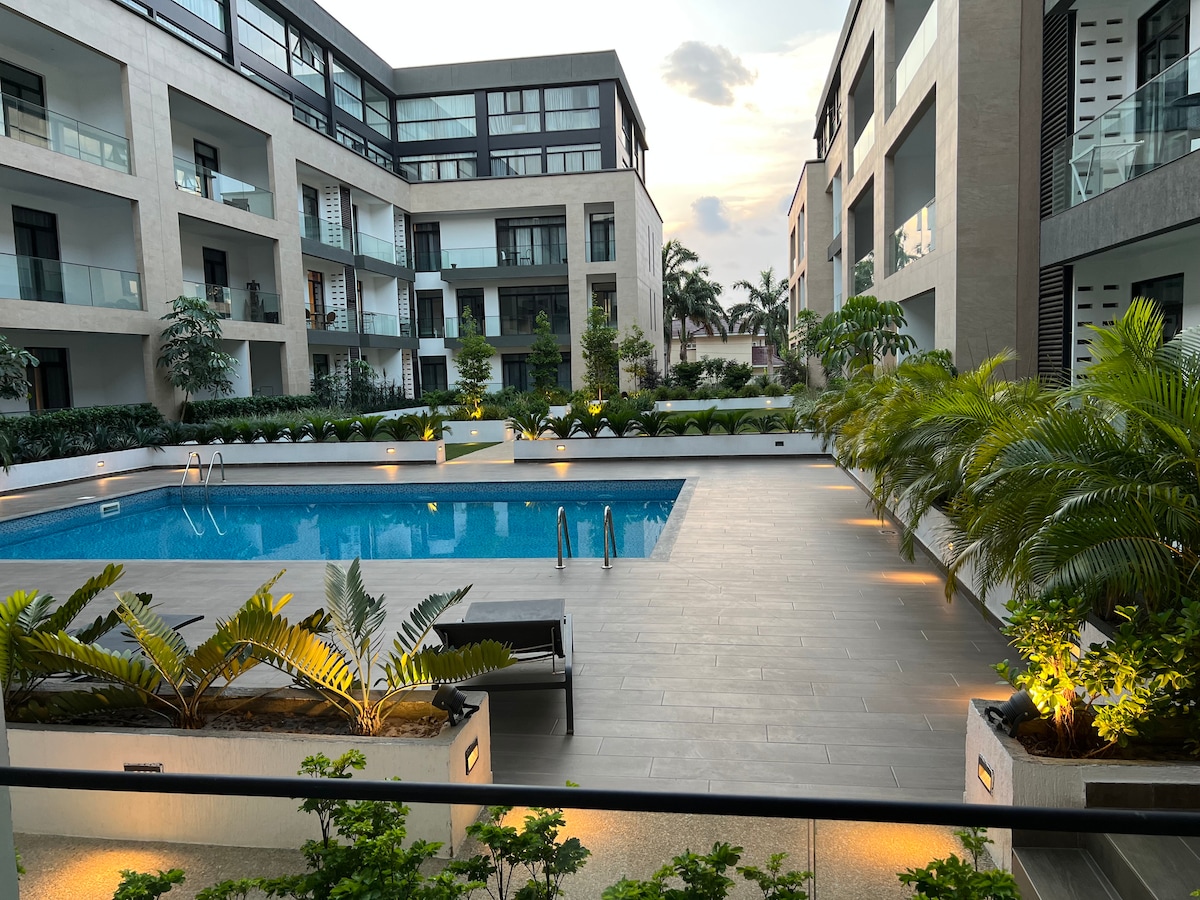 Feel at home in this peaceful one-bedroom retreat at Embassy Gardens, Cantonments. Guests love the spotless space, reliable high-speed Wi-Fi plus portable MiFi, and stress-free keyless entry. Enjoy quiet mornings on the balcony overlooking the pool, a fully equipped kitchen, a comfortable king-size bed, and strong AC. Safe, serene, and centrally located — many guests say they didn’t want to leave and always book again. Book now or add to your wishlist.