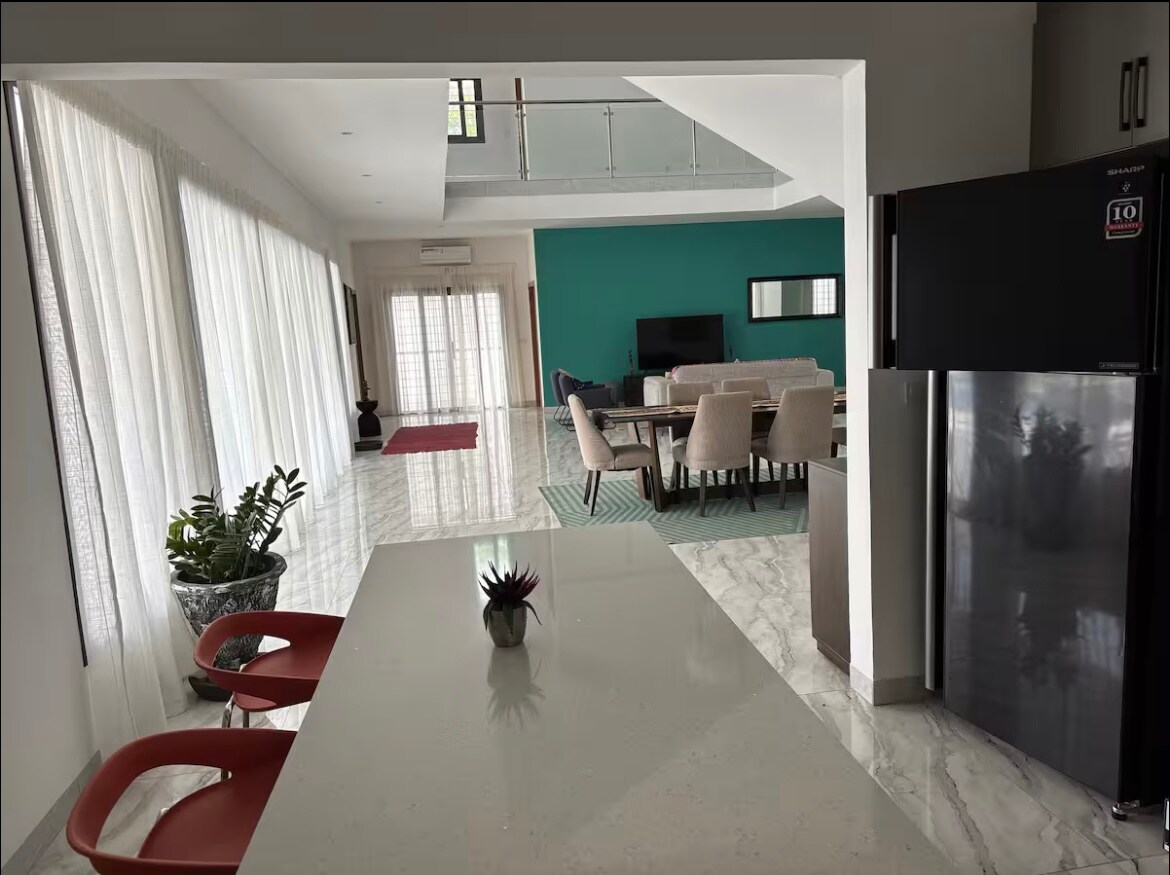 Vous disposez d’un accueil chaleureux depuis l’aéroport avec un chauffeur sur place pour vous servir(des frais peuvent s’ajouter), le petit déjeuner est gratuit au premier jours . Situé à Adidogomé, notre maison est proche de toutes les commodités, des transports, restaurants locaux et dispose d’un accès rapide au centre-ville de Lomé . Cette maison convient parfaitement aux touristes, familles, et couples . Elle se situe à 10 minutes à pieds du marché 100% bio avec des produits frais et naturel