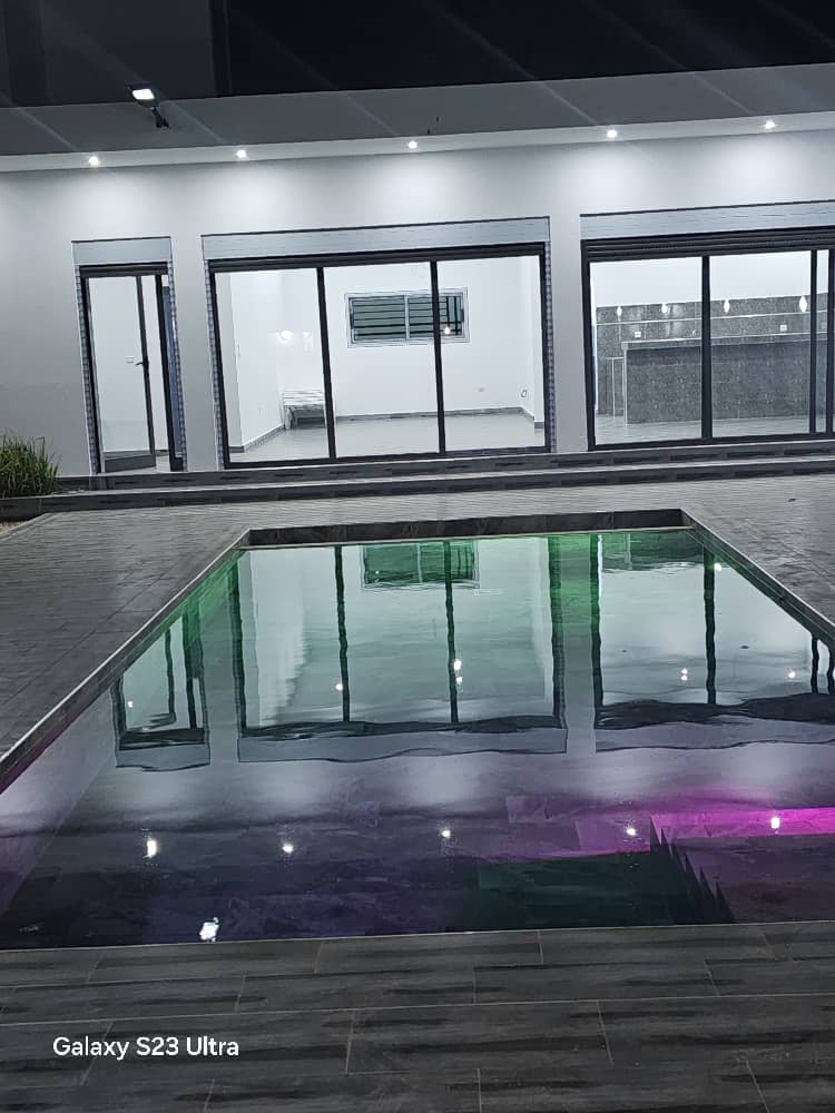 PS 5 ,Netflix,Amazon Prime,Showmax in ALL ROOMS Luxury Furnitures Smart TV in ALL ROOMS 75-inch Smart Tv in Living room Full ACS Smart home Alexa Roof speakers in All Rooms fridge in all rooms Jacuzzi Lagoon view Private Lounge Wi-Fi Towels Sound proof private Swimming Pool Snooker Table Tennis Table ball Microwave , Juice marker & Blender Water Treatment Cooking Utensils Secure Environment/ Gud road Access 24hrs security & electricity SOLAR INVERTER