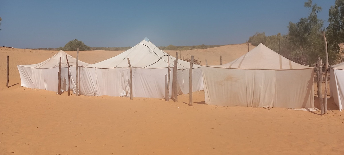 Enjoy the natural Tujereng Village Tent Homes available in Tujereng The Gambia. These tents are made of a thin fabric that is attached to supporting ropes or poles. It is used as portable homes and protects people from rain, wind, and cold weather
