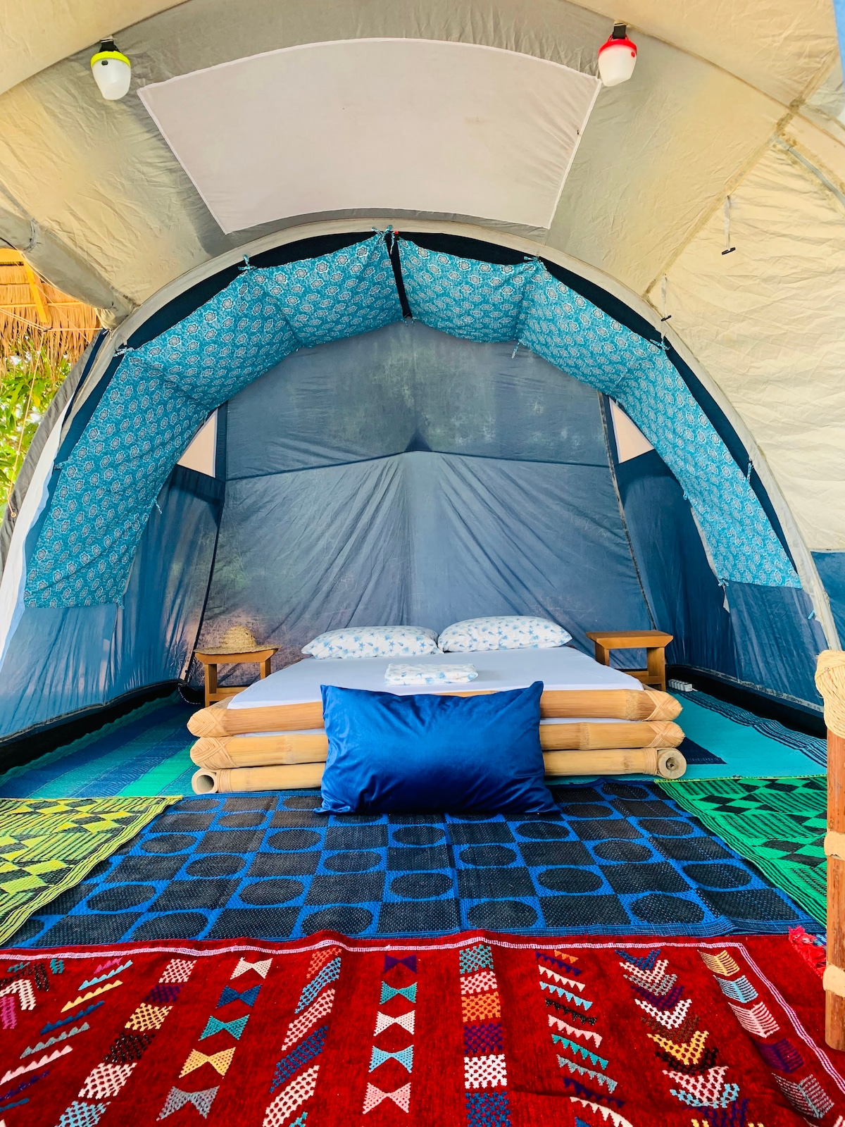 • Tent Accommodations • Shared Bathrooms • 360-Degree Terrace Access Experience breathtaking views from our terrace, perfect for morning yoga, sunrise meditation, or stargazing in the evening. • Dining & Kitchen Access Wellness & Relaxation • Meditation Zones • Massage Areas • Swimming Pool & Lounge • Bar & Private Gathering Spaces Additional Amenities • Private Beach Access • Cabanas & Pergolas