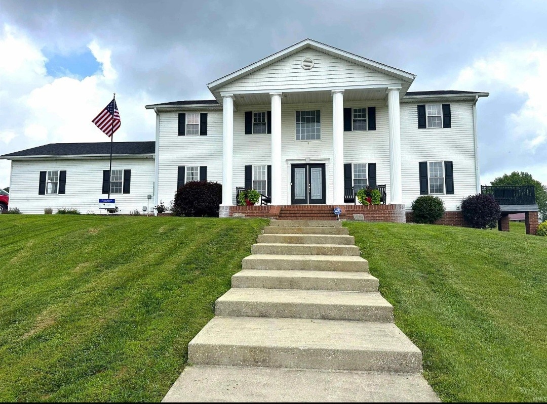 30 minutes from French Lick 13 miles to Paoli peaks ski resort This old 1880 house has just been restored! Has hardwood floors including the grand staircase and upstairs hall. The bedrooms carpeted. All 3 bathrooms have tiled floors and classic tile showers. The master bathroom has a bathtub and shower . The kitchen is fully functional. The dining room table seats 10 and the great room has 2 couches and 2 chairs and a glider rocker. 1 couch is hidabed 2 sleeping bags in closet