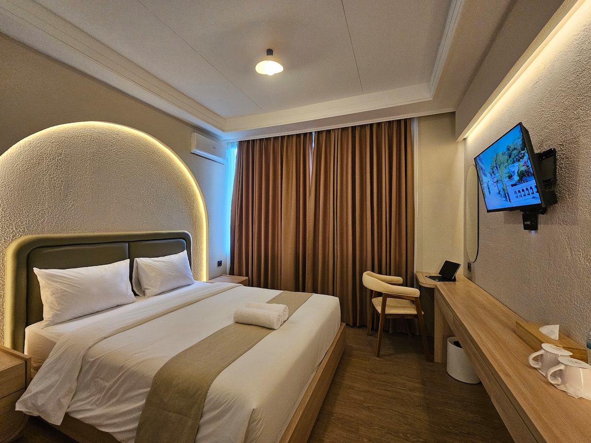 Cozy and simple, our Standard Twin Room at Grand Panorama Lembang offers two comfortable single beds, ideal for friends or travel companions. Surrounded by Lembang’s cool mountain air and peaceful garden views, the room features essential amenities like a private bathroom, TV, and toiletries perfect for a restful and budget-friendly stay close to local attractions.